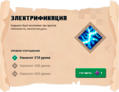 Электрификация (англ. Electrified) — это чары в Minecraft Dungeons, которые создают молнии при кувырке игрока. Ближайшие враги получат урон от этих переворотов. Урон, наносимый кувырками, будет увеличиваться с каждым уровнем улучшения.