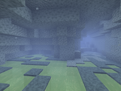 - ниже располагается массивный слой пористого туманного камня. Данная порода начинается с отметки дневной поверхности тумана и уходит вглубь вплоть до уровня около 30-ти блоков. Легко разрушается даже каменной киркой.