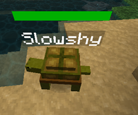 Чтобы приручить черепаху, нужно дать ей сахарный тростник или ломтик арбуза. Бросьте что-нибудь из этого около черепахи, отойдите и ждите. Обязательно нужно отойти, так как спрятавшаяся в панцирь черепаха ничего есть не будет. Как только она всё съест, вам предложат дать ей имя. Если прирученную черепаху кто-то покалечил, её можно вылечить, взяв в руку тростник или ломтик арбуза и кликнув по черепахе ПКМ . Черепах, как и многих других маленьких приручаемых мобов, можно сажать на голову, нажав на неё правой кнопкой мыши. Черепаха будет постоянно ходить за вами.