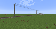 К ЖД путям «прислоняя» ставим блок «Опора контактной сети (Бетонная)»
