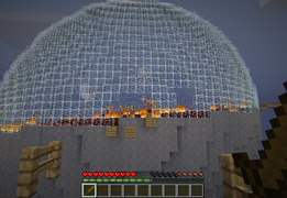 - Несмотря на размеры сфер, ощущение жизни в замкнутом пространстве может понравиться не всем. И эпичных небоскребов тут не построишь. Зато можно сделать свою сферу полностью безопасной, поставив много факелов и заделав входы.
