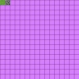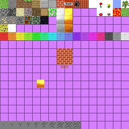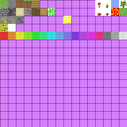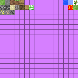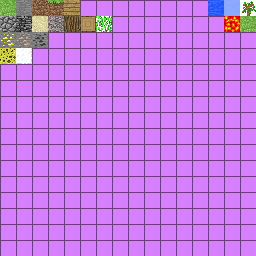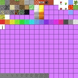 Terrain.png это файл фиксированной ширины 256×256 пикселей, который разбит на различные квадраты размером 16×16, соответствующие текстуре каждого блока, найденного в игре. Неиспользуемые участки текстуры окрашены в пурпурный цвет, как и отсутствующий текстурный блок.